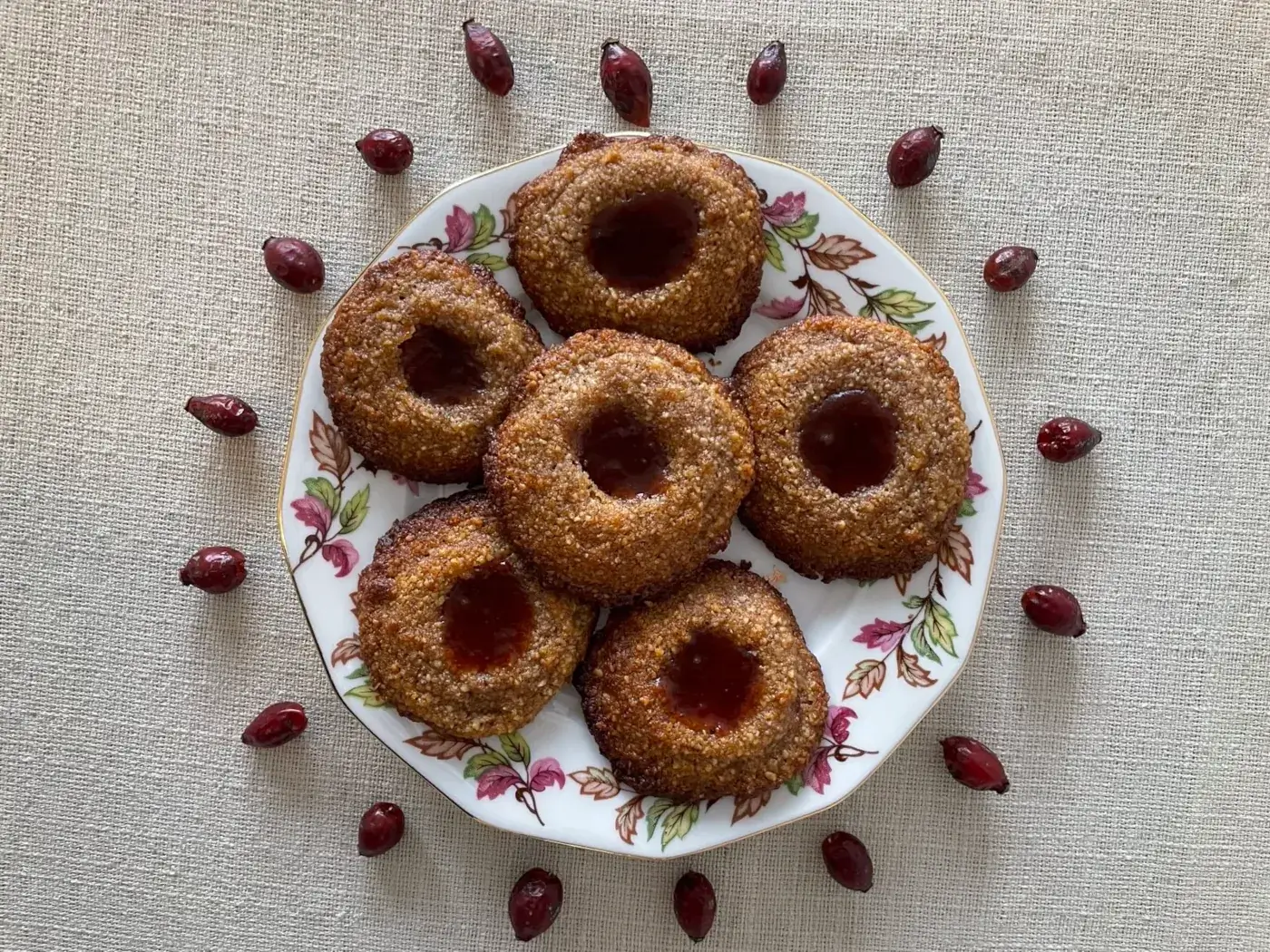Das in den Hagebutten reichlich enthaltene Vitamin C ist hitzeempfindlich und geht durch die hohen Temperaturen beim Backen zum großen Teil verloren. Deshalb eignen sich diese Kekse weniger als gesunder Vitaminlieferant – sie punkten aber umso mehr durch ihren einzigartigen Geschmack! Die Kombination aus nussigen Aromen und fruchtiger Hagebuttenfüllung macht sie zu etwas ganz Besonderem.